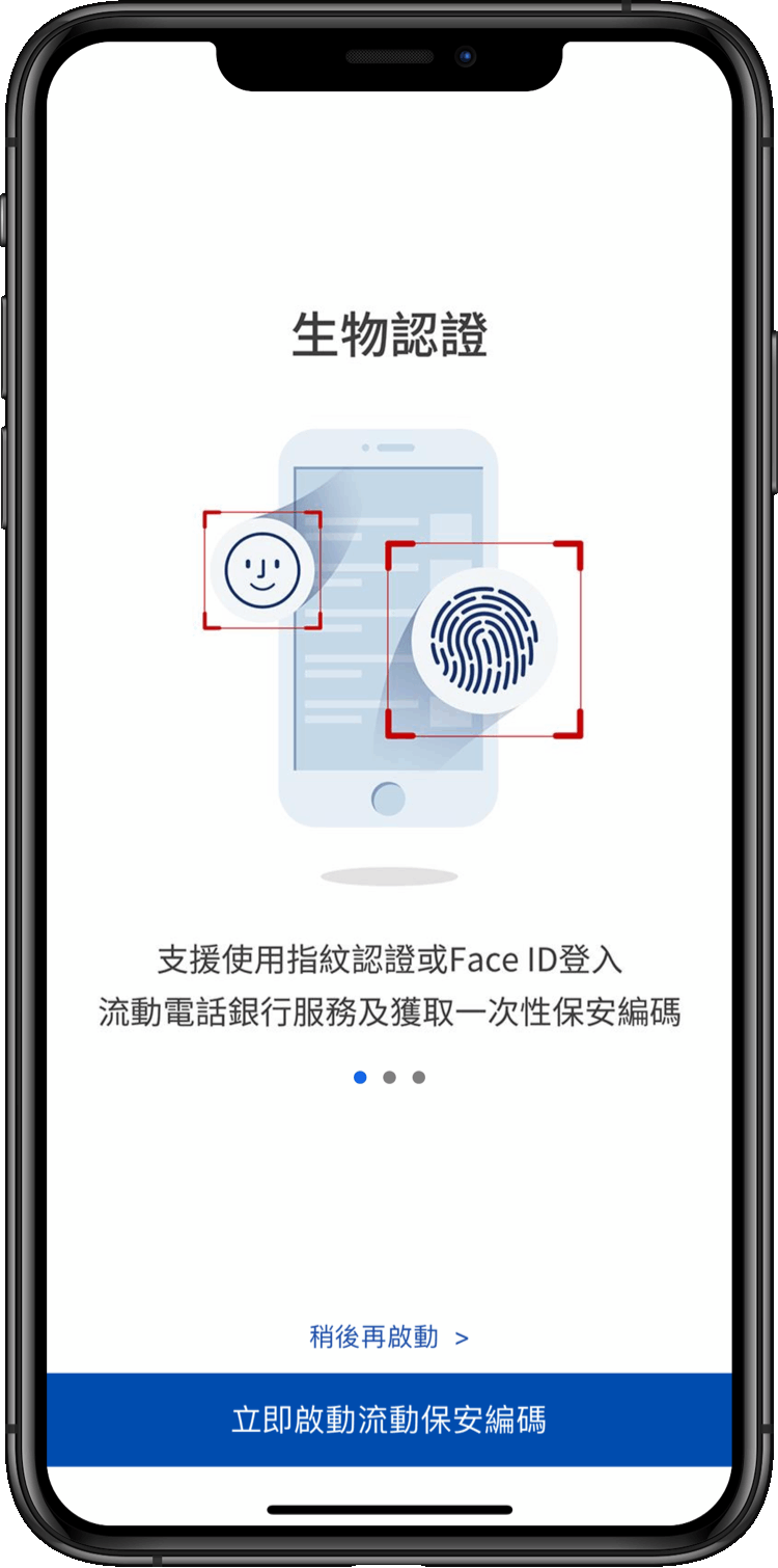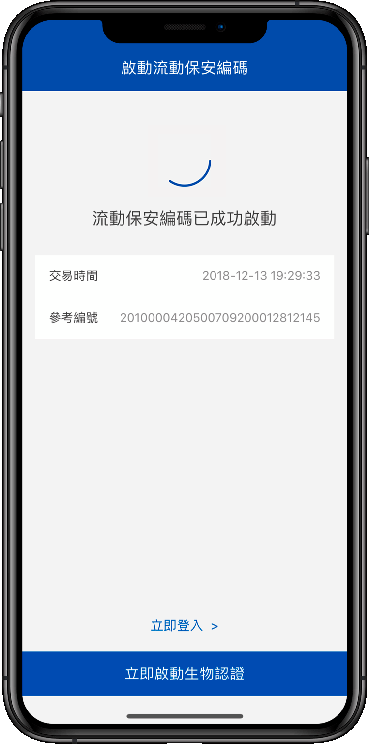 流動保安編碼已於新裝置成功啟動。您可以按「立即啟動生物認證」以啟動生物認證功能。