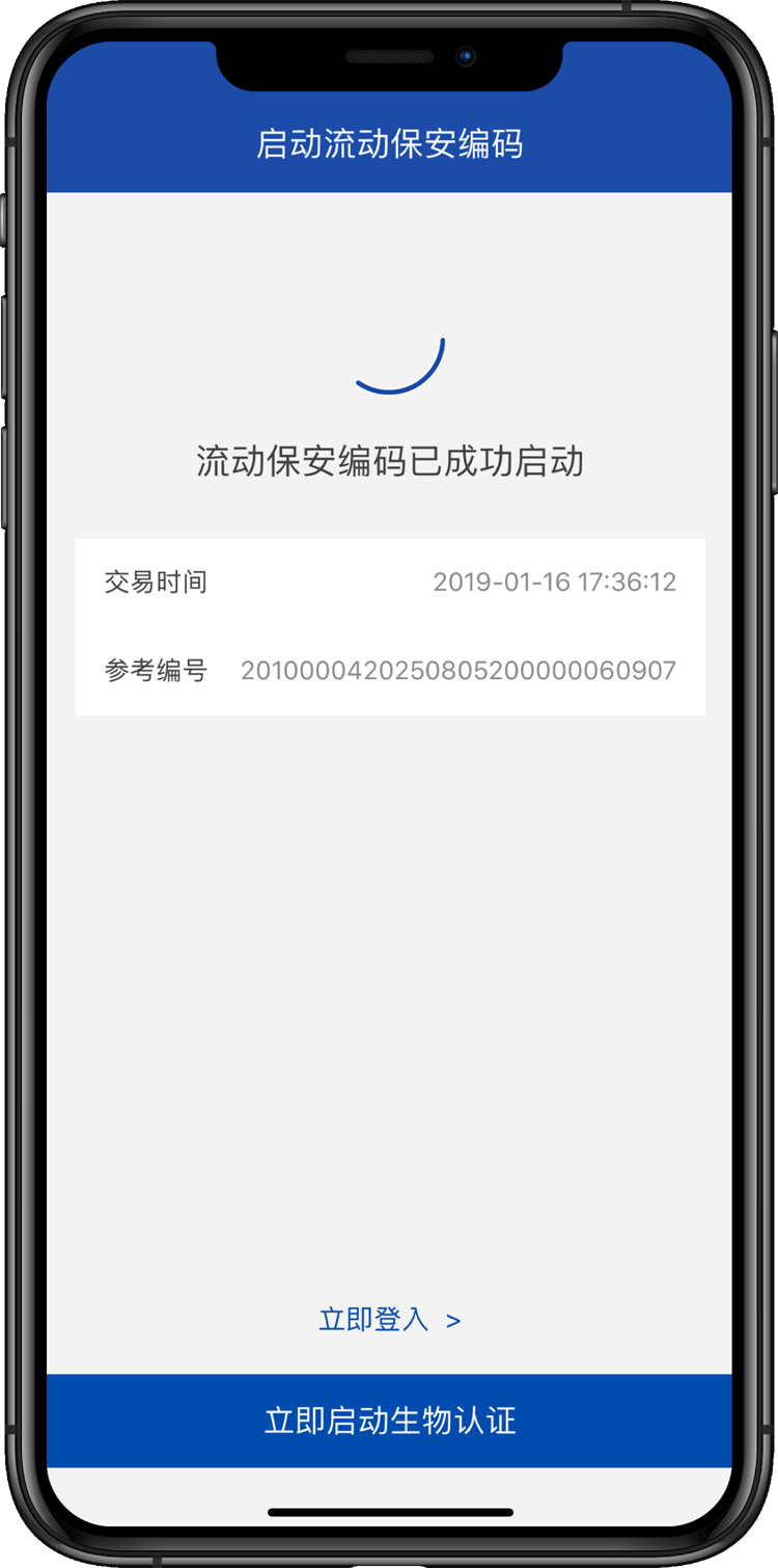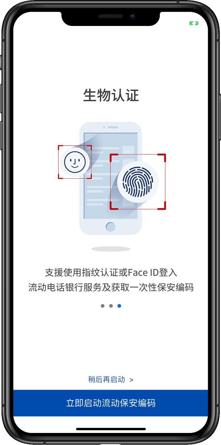 流动保安编码已于新装置成功启动。您可以按「立即启动生物认证」以启动生物认证功能。