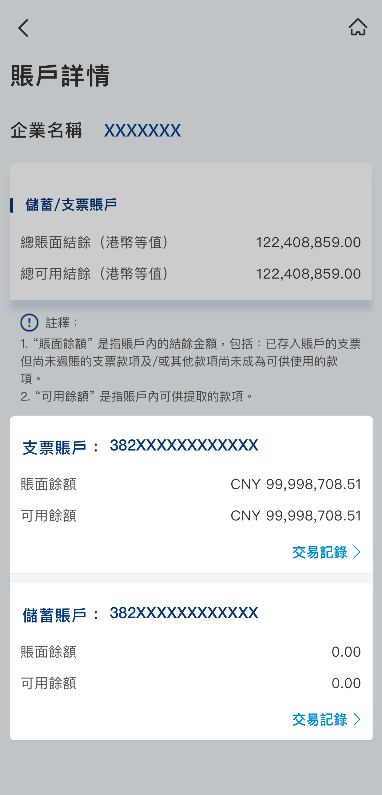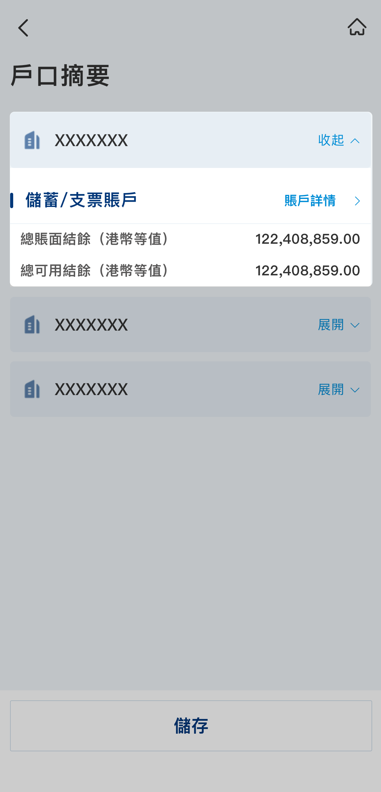 頁面會顯示賬戶總結餘概覽。按