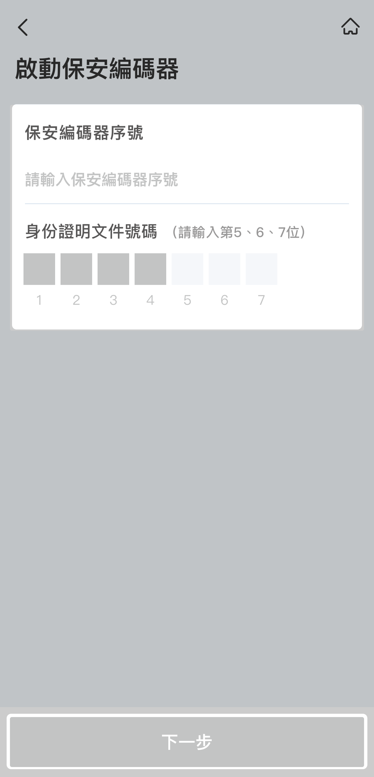 輸入相關資料以核實身份,再按「下一步」。