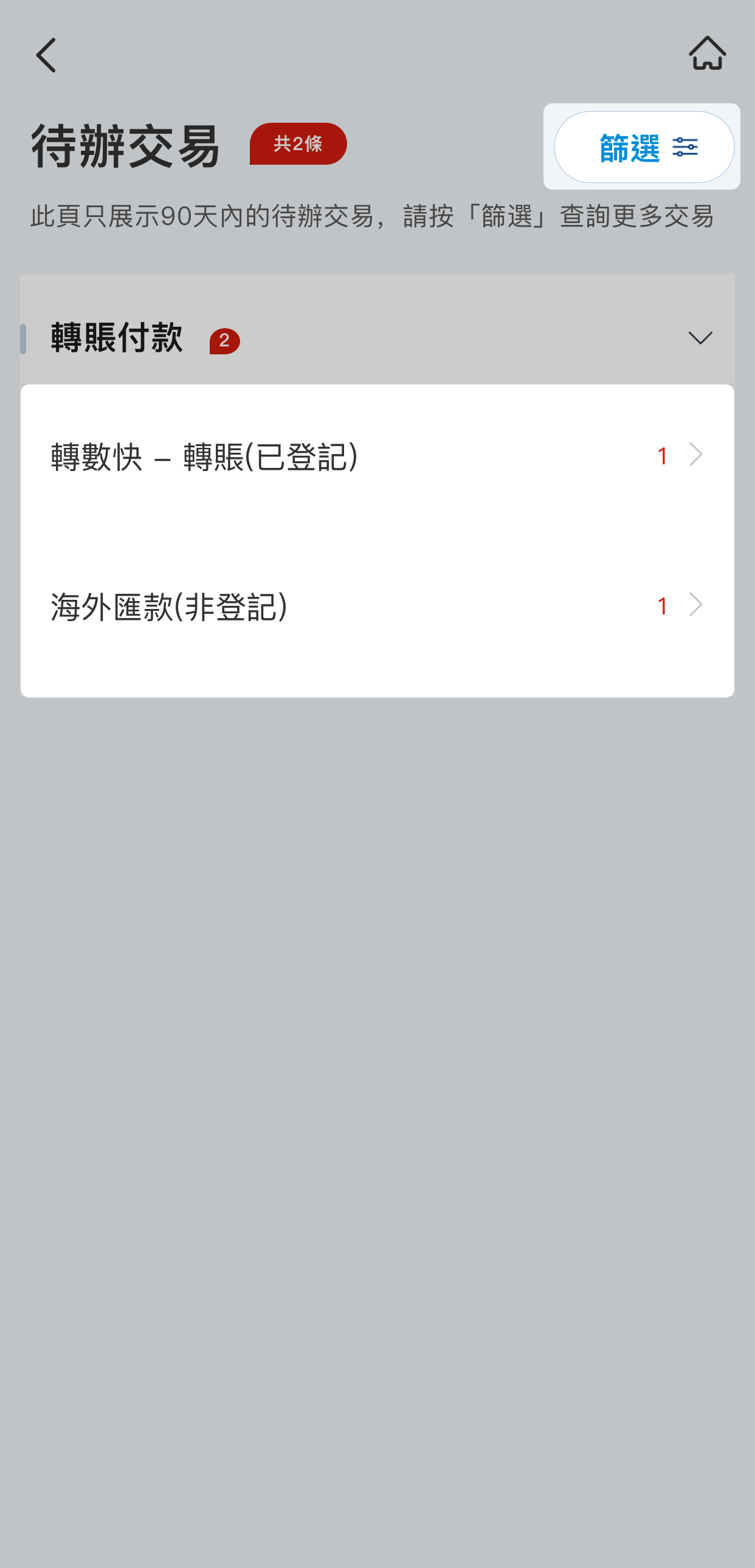 於「待辦交易」頁面,顯示現時待授權交易的類別及數目,點選需要進行授權的交易類別後,跳至步驟3; 或
