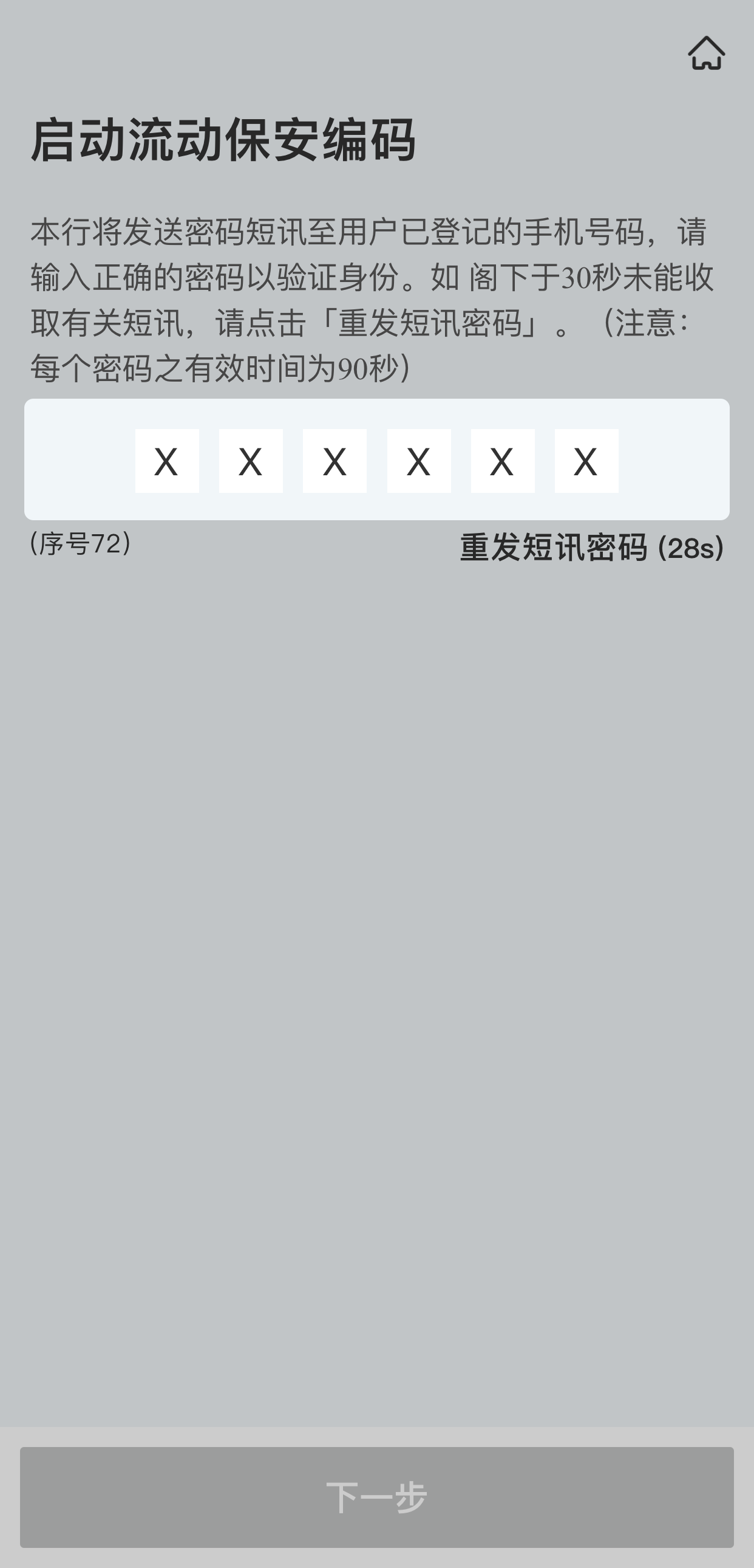 “一次性的短讯密码”会发送到用户的登记电话号码。将所收到的“一次性的短讯密码”按页面指示输入,然后按“下一步”。