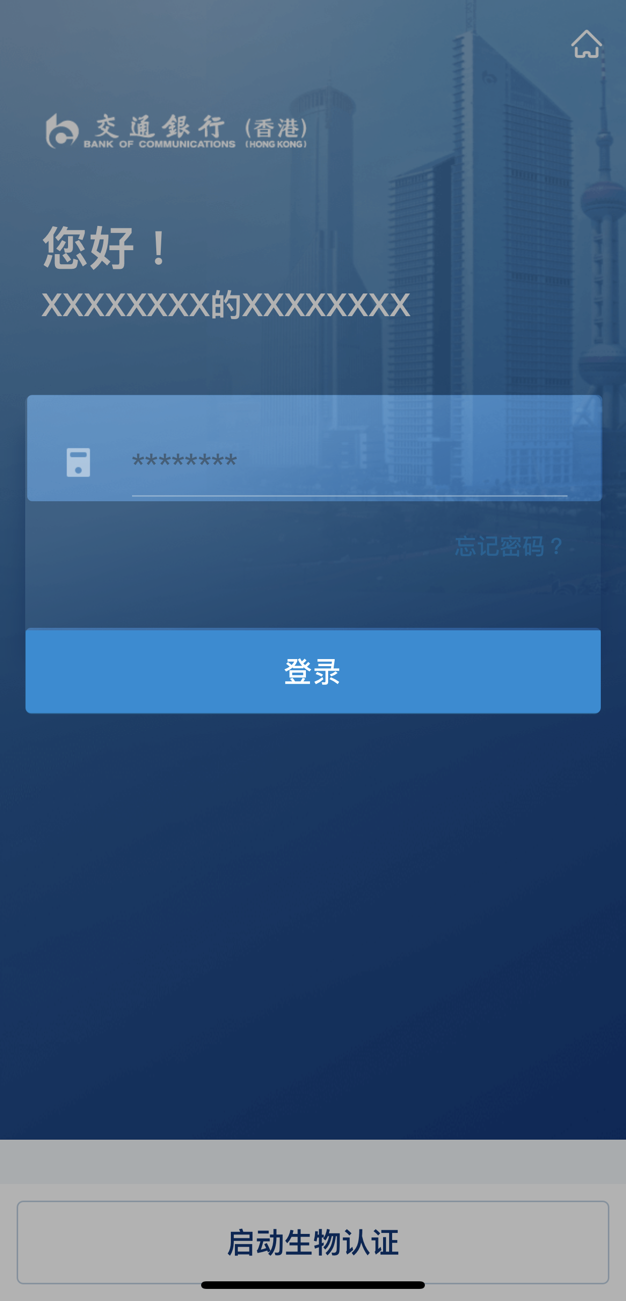 如已启动“生物认证”,则会按照装置的生物认证方式(Face ID、Touch ID或指纹认证)进行登入验证。