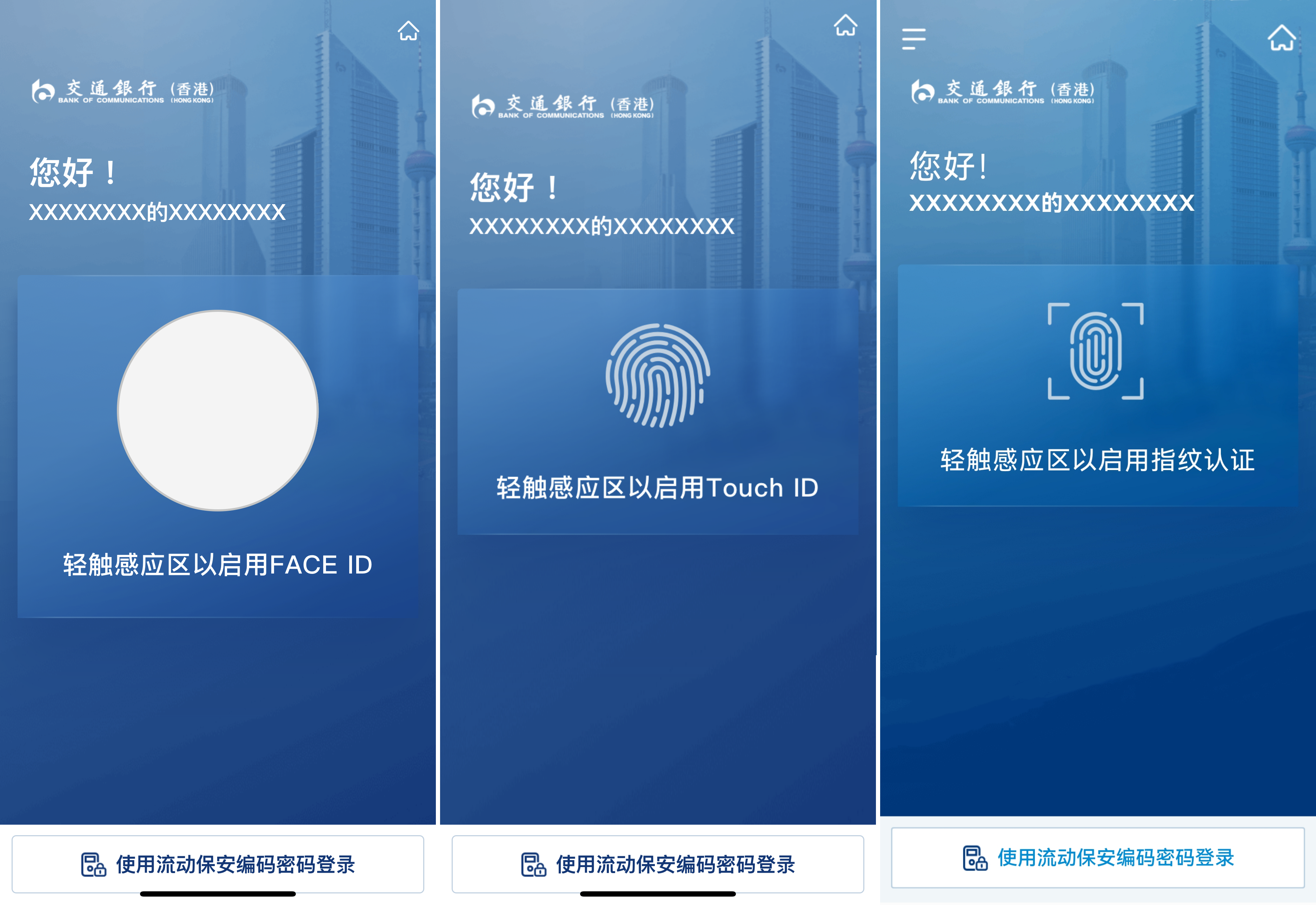 如未启动“生物认证”,请输入“流动保安编码密码”进行登入验證。