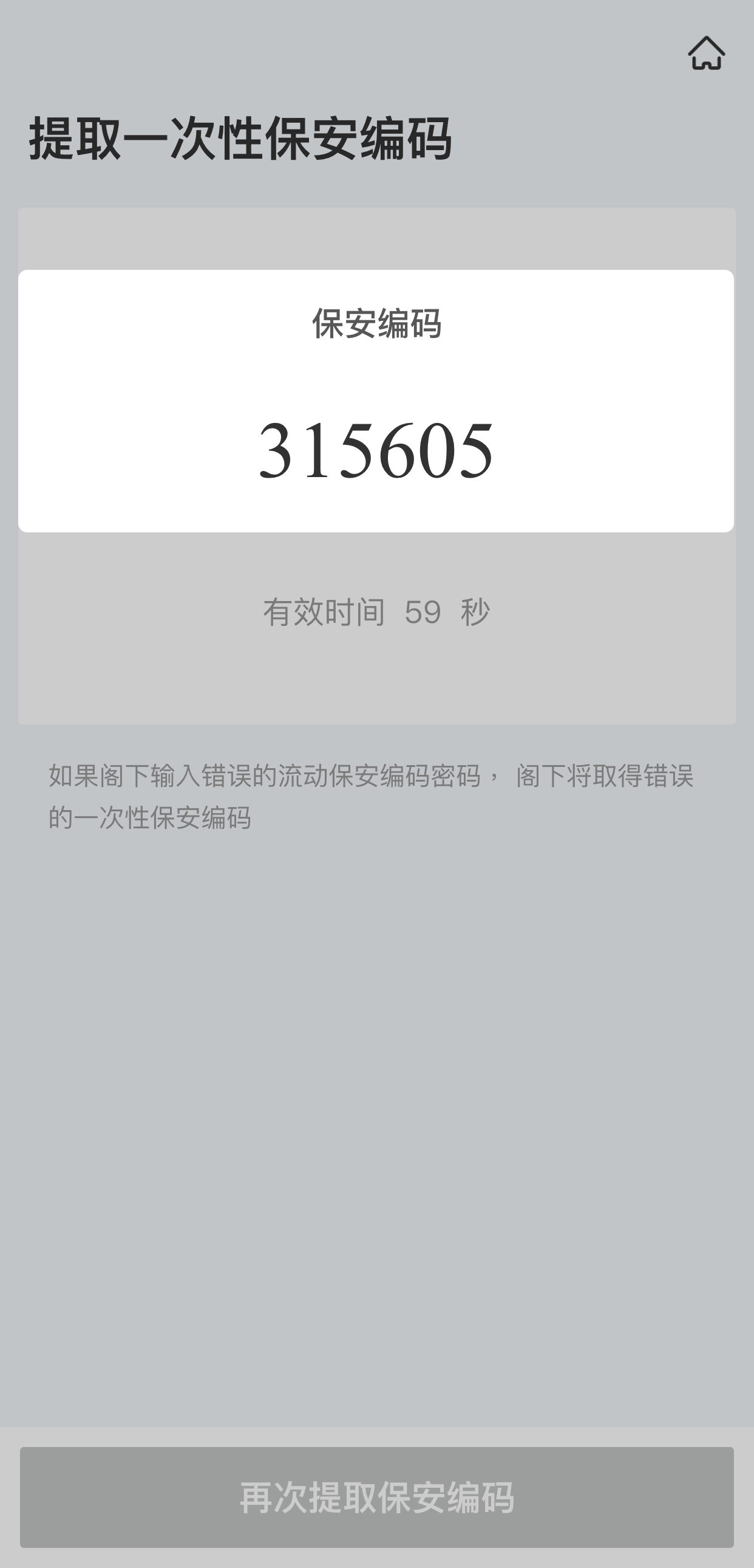 页面即显示6位数字“保安编码”。