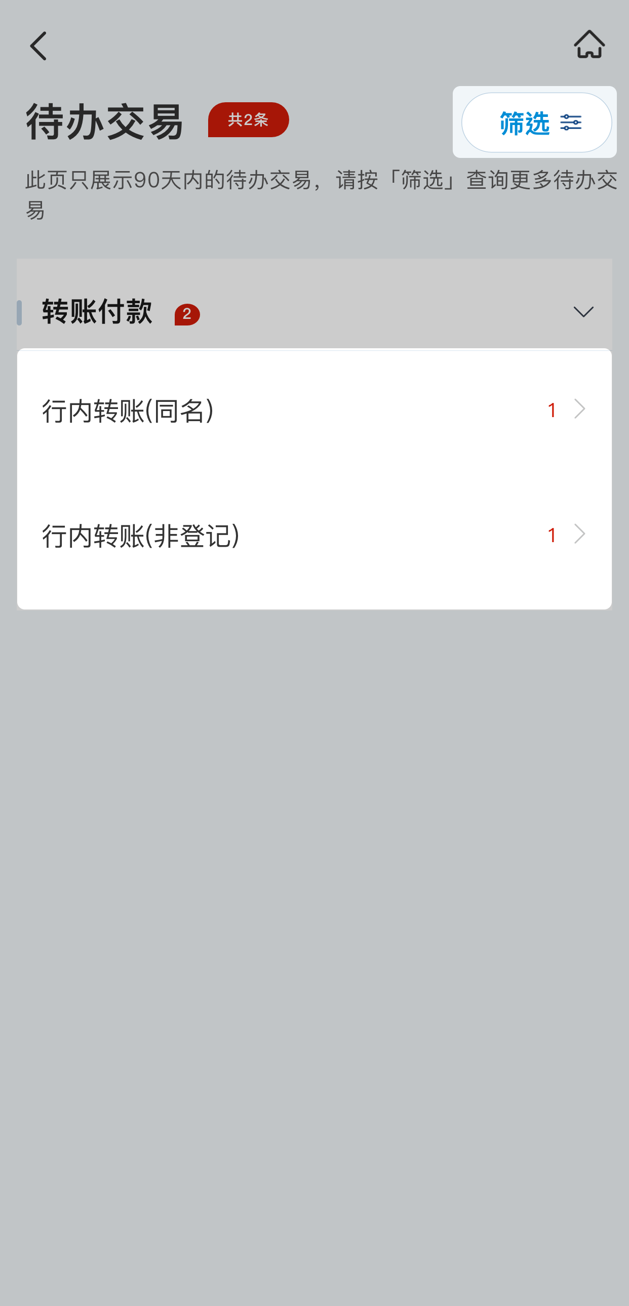 于“待办交易”页面,显示现时待授权交易的类别及数目,点选需要进行授权的交易类别后,跳至步骤3; 或