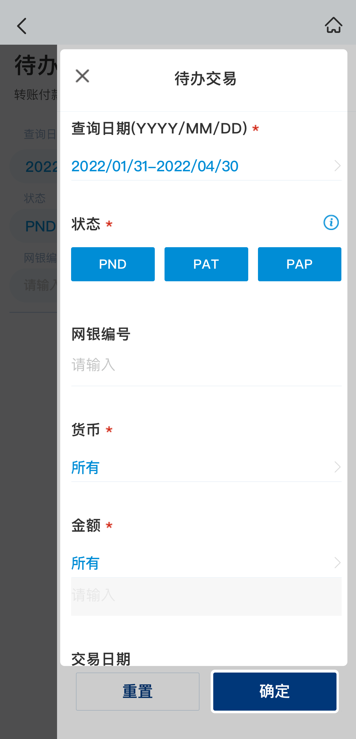 按“筛选”以查询自定查询条件,以授权指定的交易,以进入下一步。