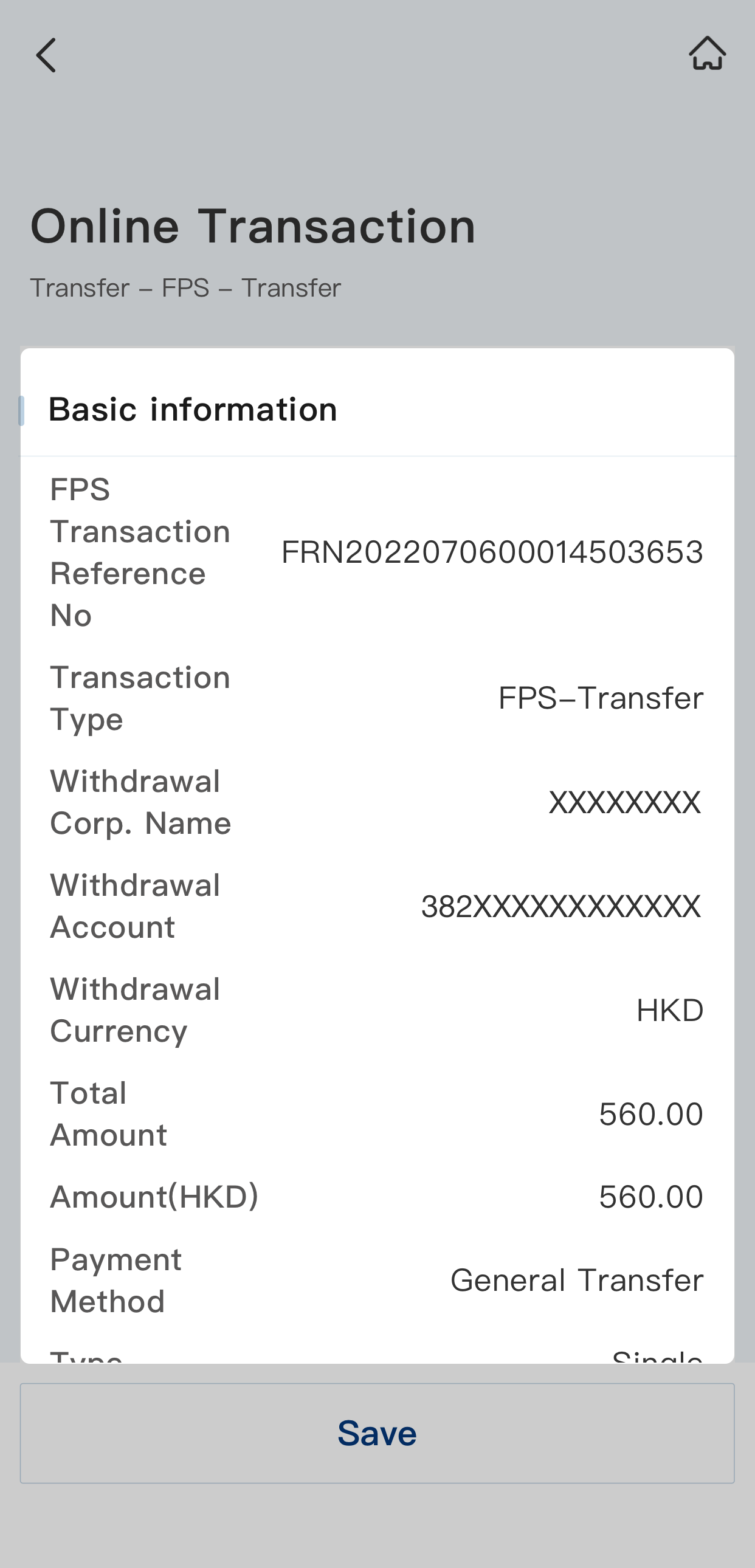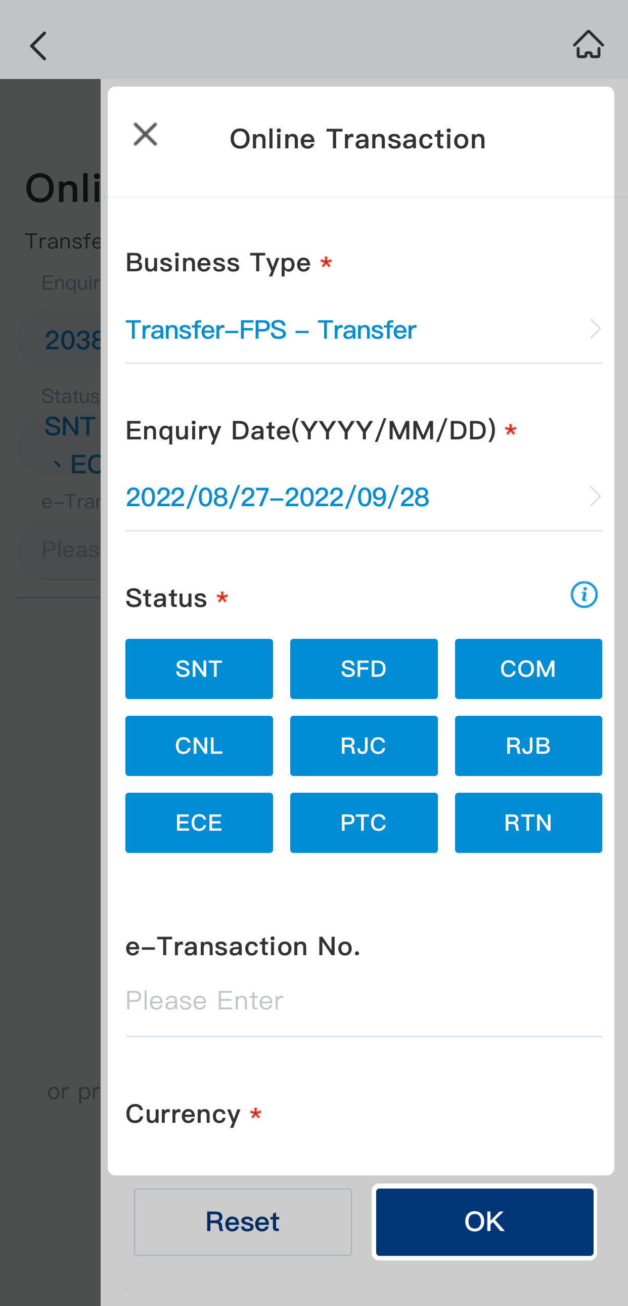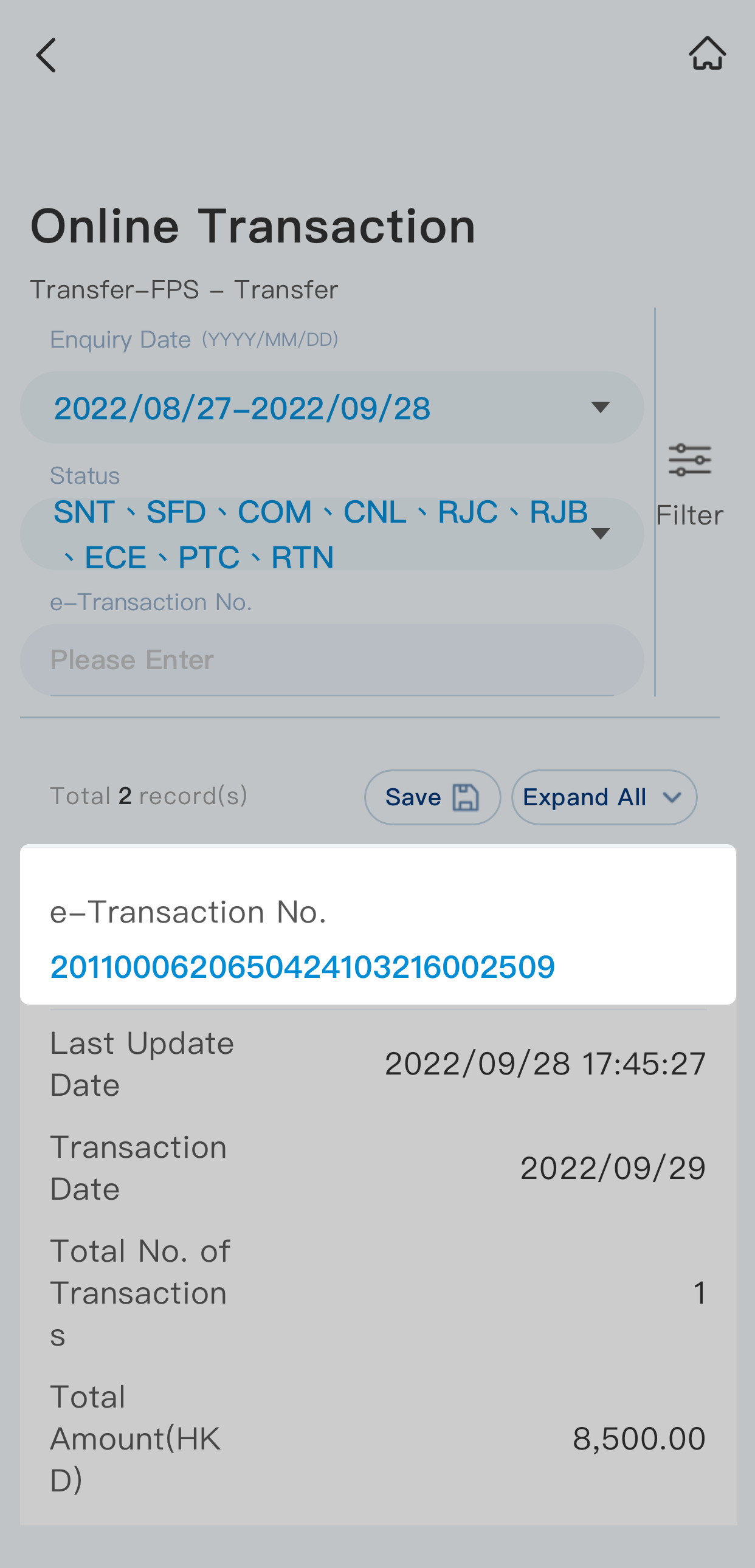 The online transaction records that meet the search criteria are listed out on the page. You can press the particular "e-Transaction No." for enquiring transaction details.